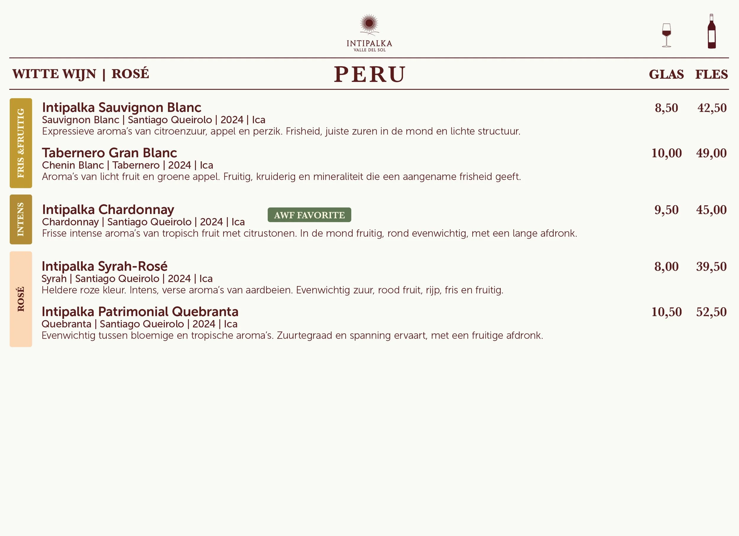 In de moderne wijnmakerij combineert de familie Queirolo generaties aan ervaring met innovatieve technieken. Door het gebruik van zowel Franse als Amerikaanse eikenhouten vaten ontstaan verfijnde wijnen die de trots en de geschiedenis van Peru weerspiegelen. Van hun soepele, fruitige Malbec tot de complexe blends, Intipalka biedt een unieke wijnbeleving die u meeneemt op reis naar het hart van de Andes.